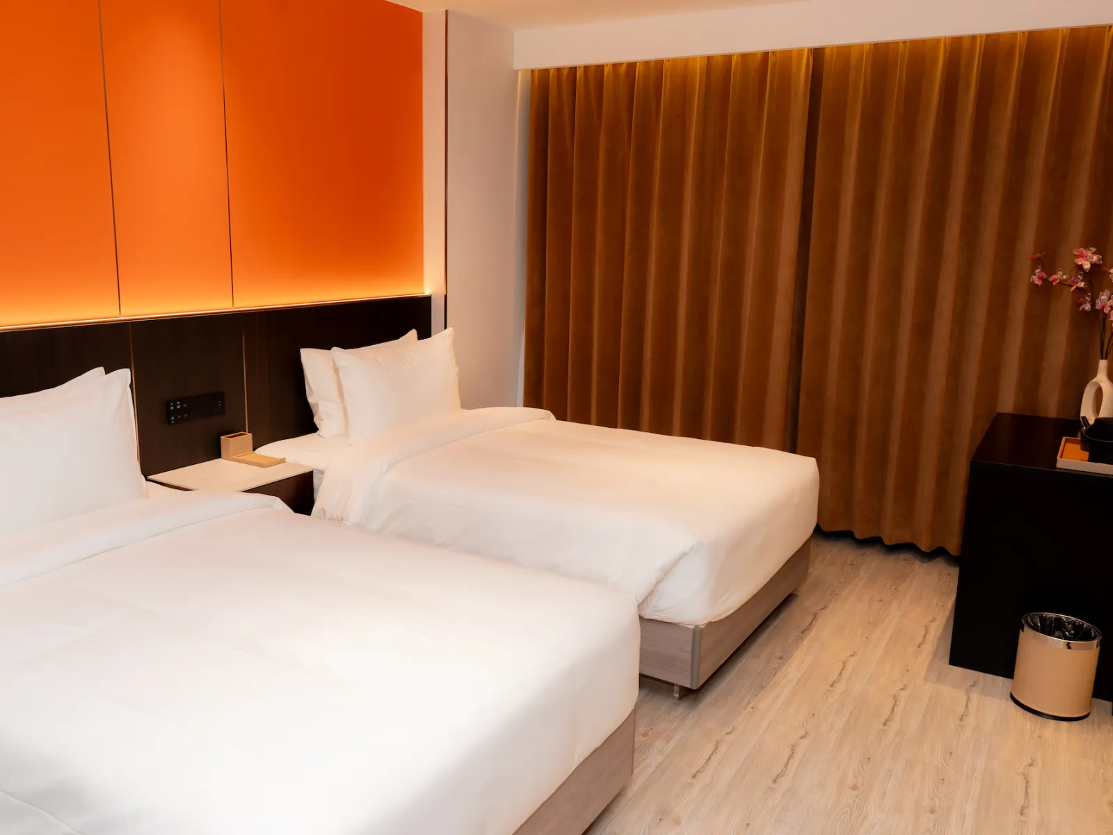 Perfect for friends or colleagues traveling together, the Deluxe Twin Room offers two comfortable single beds with premium bedding. Enjoy a bright and airy space equipped with air conditioning, free Wi-Fi, a flat-screen TV, and a well-appointed private bathroom. This room combines convenience and comfort for a pleasant stay.